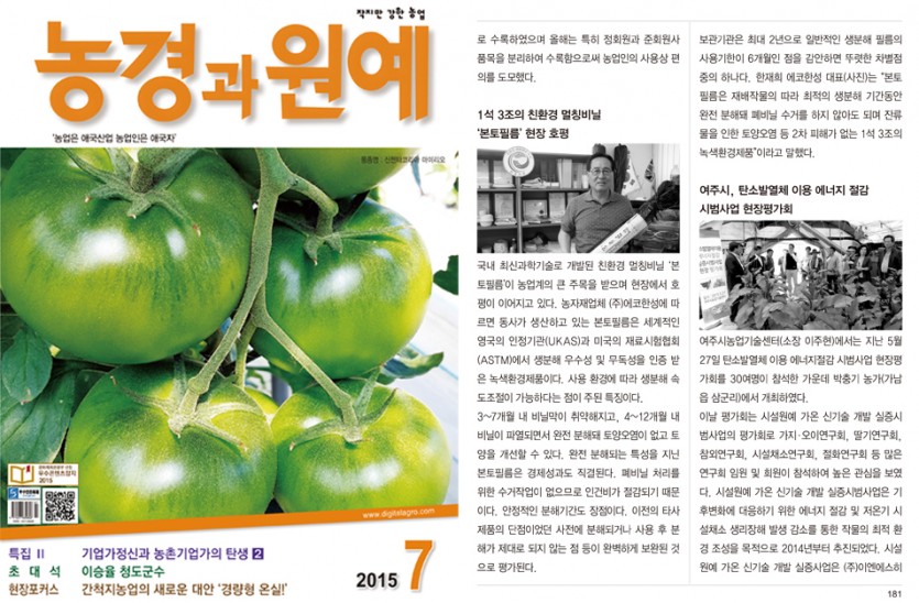 농경과 원예(2015.07월호) - 1석 3조의 친환경 멀칭비닐 ‘본토필름’ 현장 호평