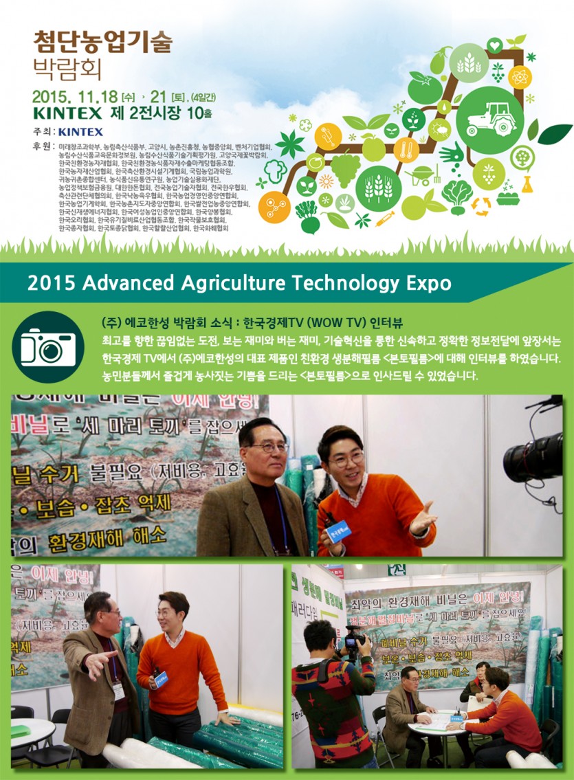 지난 11월18일부터 11월21일까지 4일간 일산 킨텍스 제2전시관에서 “2015년 첨단농업기술박람회”가 열렸습니다.