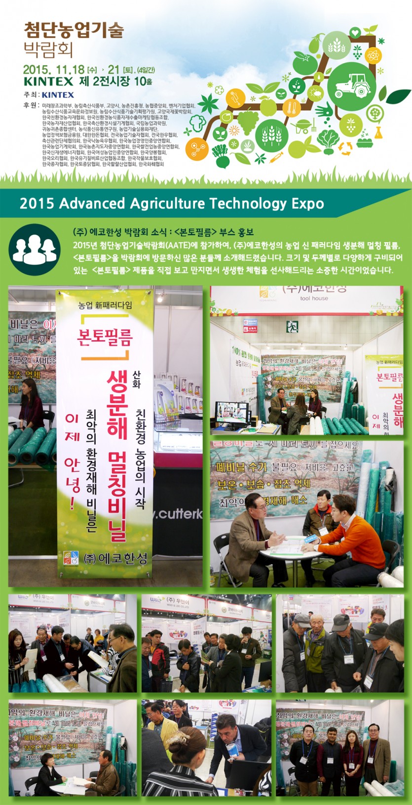 2015년 첨단농업기술박람회(AATE)에 참가하여, (주)에코한성의 농업 신 패러다임 생분해 멀칭 필름,